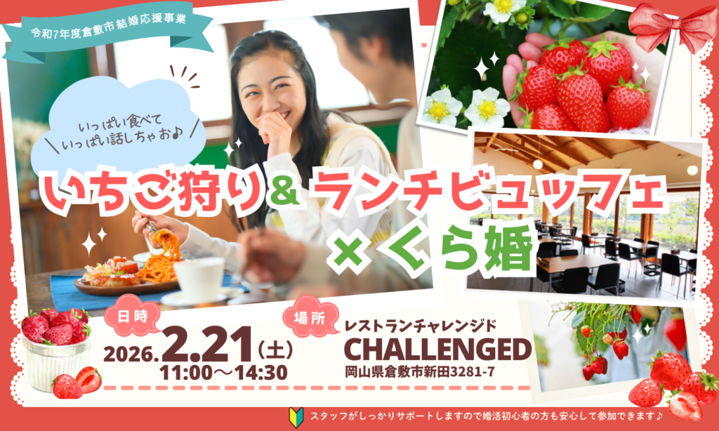 倉敷の人気店「チャレンジド」で楽しむランチビュッフェと、春いちごを満喫する特別パーティ。